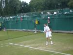 I didn't fancy seeing Bloomers lose a 3rd set as tamley as he lost the first two, so went to watch Eaton. He served just as well as his 2nd round match, but this time he cut out the DFs which made him nearly impossible to break. He was serving at least two aces a game, and even the few times he missed his first serve, his second is just as good. I can't really believe Eaton has done relatively nothing the rest of the year when he has so much potential. He has totally outplayed two solid Challenger level players, and it's impossible to imagine Patience was ranked over 500 places higher than Chris. There were quite a few people watching Chris as well, possibly more than watching Bloomers. Famous faces included Boggo, Skupski (I think), Tara Moore, Cox and I think some of the other younger players, although I don't really know what they look like.