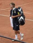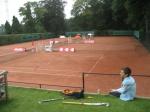 I don't pretend to be a good tennis analyst having only ever played for a few lessons at school so I won't make many comments on the level of play. I arrived after the match had started and Dan was 1-3 down. His attitude was already reminscent of AM on a bad day - irritable and swearing out loud. The court is overhung by trees at one end so hadn't dried out completely and he was shouting to the umpire that there were only 2 small dry patches at his end of the court. Masson was much the better player at this point. A couple of lost games later and Dan was serving to stay in the set. He appeared to give the game away, making very little effort on any of the points, which rather disturbed the Belgians sitting beside me. I have to confess, I would have thought it worth winning this game, even if losing the set after the next game, in order to serve first in set 2. 6-1 to Masson.