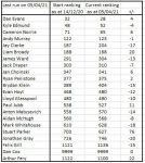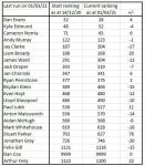 Only a few small moves at the top of the mens rankings, but Liam, Stuart and Arthur have had an influence. What surprises me most is that the average of all your predictions is at the top of the leaderboard, and not in the middle !
