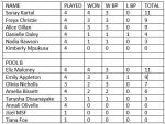 Women Pool B Emily Appleton v Jizel Fernandes Amelia Bissett v Olivia Nicholls Eliz Maloney v Annali Olivelle