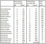 Jodie has clearly been particularly on the charge in recent months after early year doubts ( where might she end up? ) and Katie Swan has clearly had a major boost this last week.