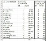 Quite a few changes already, as the post AO rankings come out. With the ATP making a real mess of the calculations by not dropping points and counting some tournaments twice. Here is the men's rankings table as at 31/01/2022
