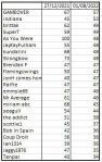 1. Cam 20 2. Andy 24 3. Dan 44 4. Kyle 96 5. Jack 140 6. Liam 166 7. Jay 232 8. Paul 272 9. Ryan P 290 10. Billy 326