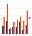 Most titles up to and including Week 34 ( 14 with 4 or more, 7 seniors and 7 juniors ) :