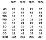 I think they'll be hard pushed to beat this years total next year. Most of the extra titles are for low level tournaments - but they'll have to be very quick out of the blocks next year.