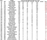 My fault for not explaining clearly how it works. Points are gained in the week they are scored. The 30 points for QR3 (week 34) went on last week into the June-August table. Thats why her total is 387 not 357.