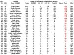 Hannah and Freya have been mixed up. Hannah is WR545 with 63 points and Freya is WR 651 with 62 points.Maia, Tiffany and LJB are missing from the tableTalia has 12 pointsMika is WR864 with 28 points