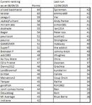 Quite a few changes in the rankings. Katie, Heather and Jodie dropping away, Mimi climbing fast. Doesn't take a lot of movement to change the points on any single player.