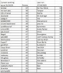 1. Emma R - 18 2. Katie B - 35 3. Jodie B - 75 4. Sonay K - 110 5. Harriet D - 150 6. Marni B - 180 7. Lily M - 225 8. Fran J - 250 9. Ella M - 300 10. Mimi X - 350