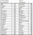 Updated table with subs (based on 21/07/2025 rankings