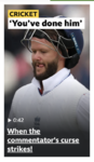 An example of commentators' curse. I couldn't post a direct link to the short video clip: