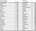Here are the starting points for this year's competition. An interesting set of predictions with a wide range. Mervatron is the most optimistic with a prediction of a rise of 710 places for our top 10, with Bagel being the most pessimistic with a fall of 10% (i.e. 173 places). If anyone disagrees with their points please send me a private message with your query and I will look into it, rather than discuss it in this thread.